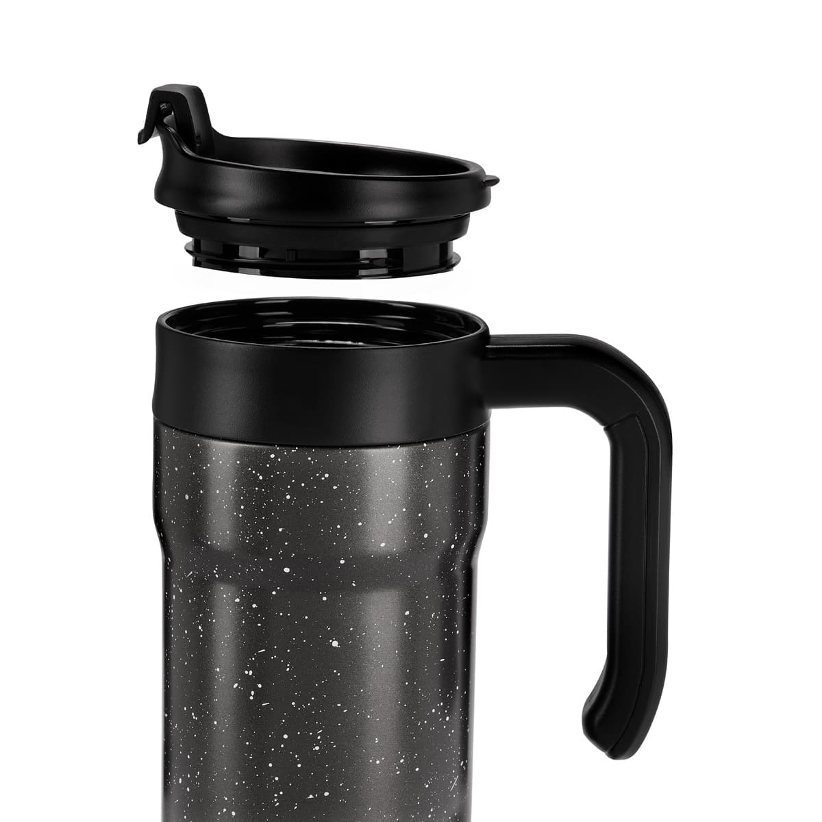 TERMO DOTS - Doble pared. Cerrado al vacío. Pared interna y externa de acero inoxidable. Tapa de plástico con cierre de rosca y sobretapa con sistema push. Mantiene temperaturas caliente y fría 6 hrs aproximadamente. Efecto brisado. El terminado no es uniforme y puede variar por la técnica de producción. Incluye caja individual.