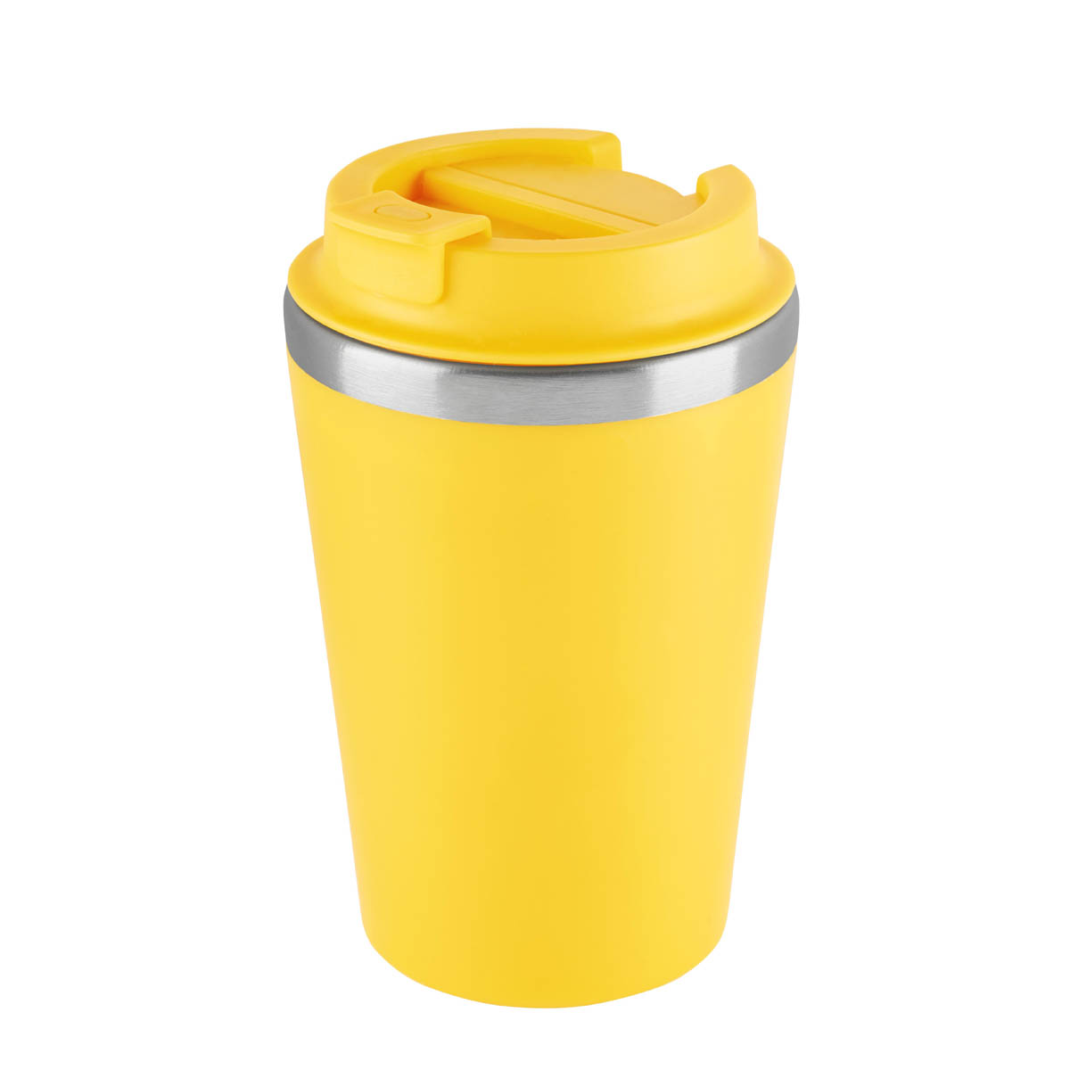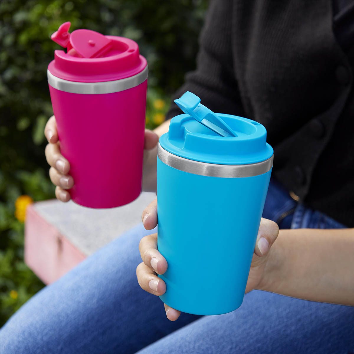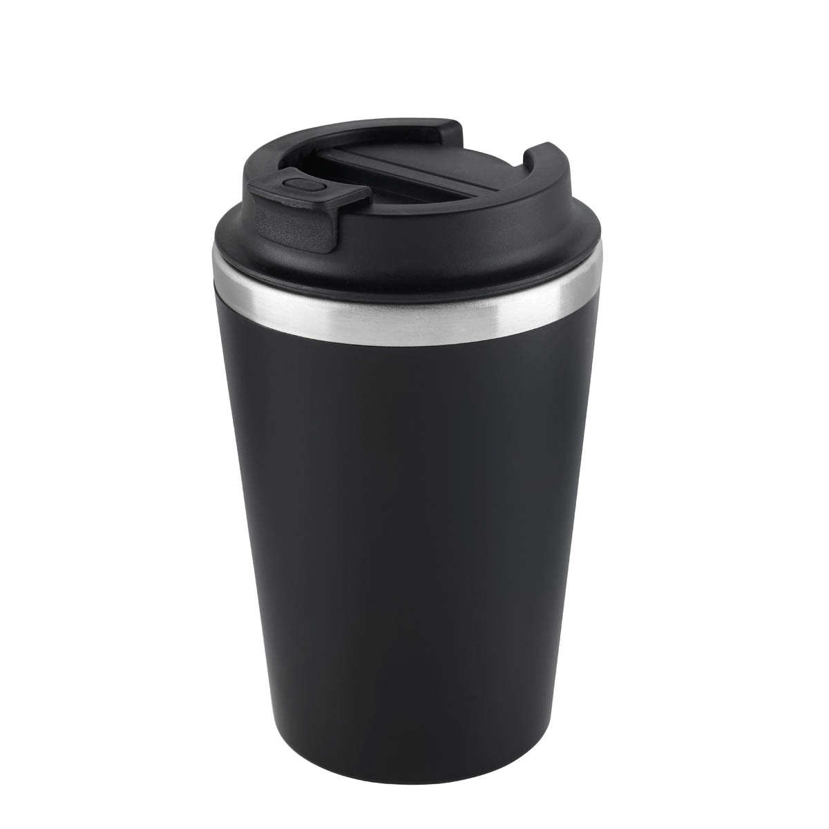 TERMO BATANI - Termo doble pared. Pared interna de acero inoxidable y externa de plástico. Tapa con sistema de rosca que garantiza un cierre hermético. Sobretapa con sistema push que previene derrames. Su elegante detalle metálico, rompe con la monocromía y añade un toque de distinción. Capacidad de 12 Oz. Base de 7 cm de diámetro. Incluye caja individual.