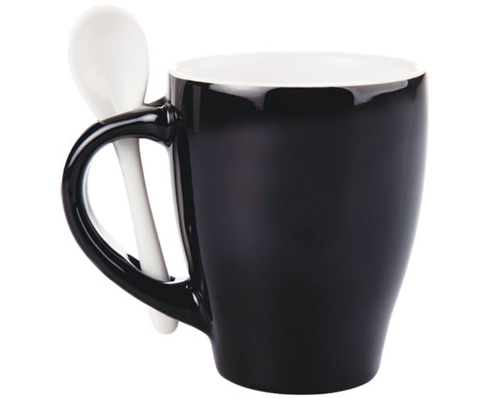 LONDON - Taza bicolor con cuchara. CAP. 12 OZ. Presentación: caja individual.