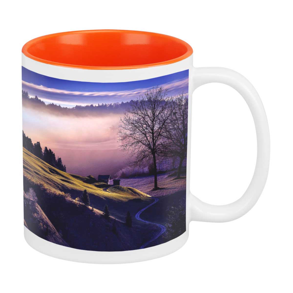 TAZA PARA SUBLIMAR PANAJI - Taza para sublimar exterior blanco e interior de color. Venta caja cerrada de 36 piezas.