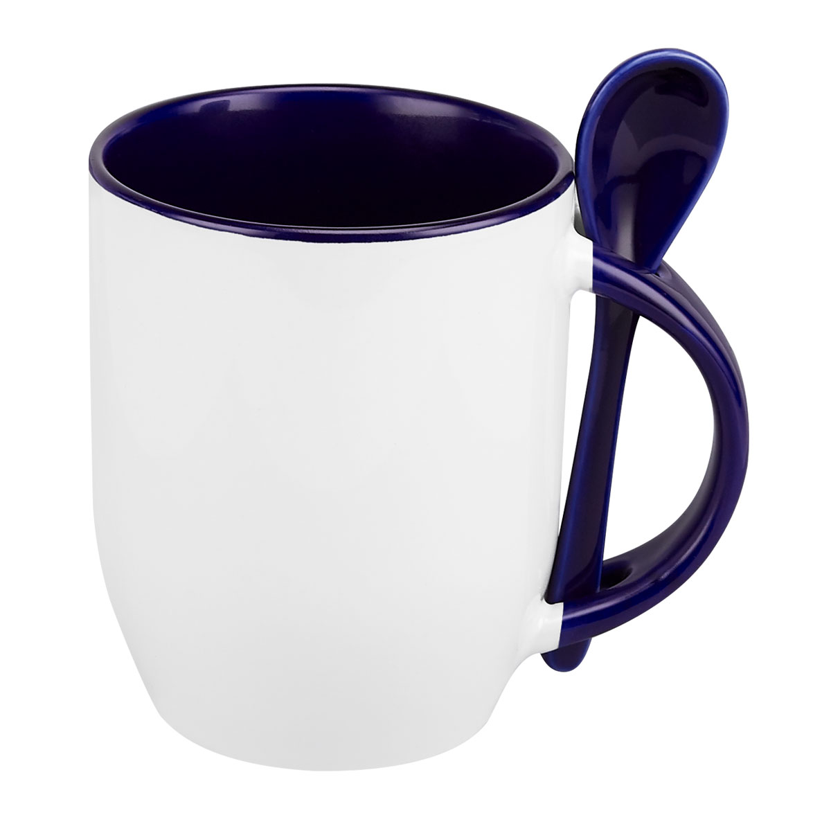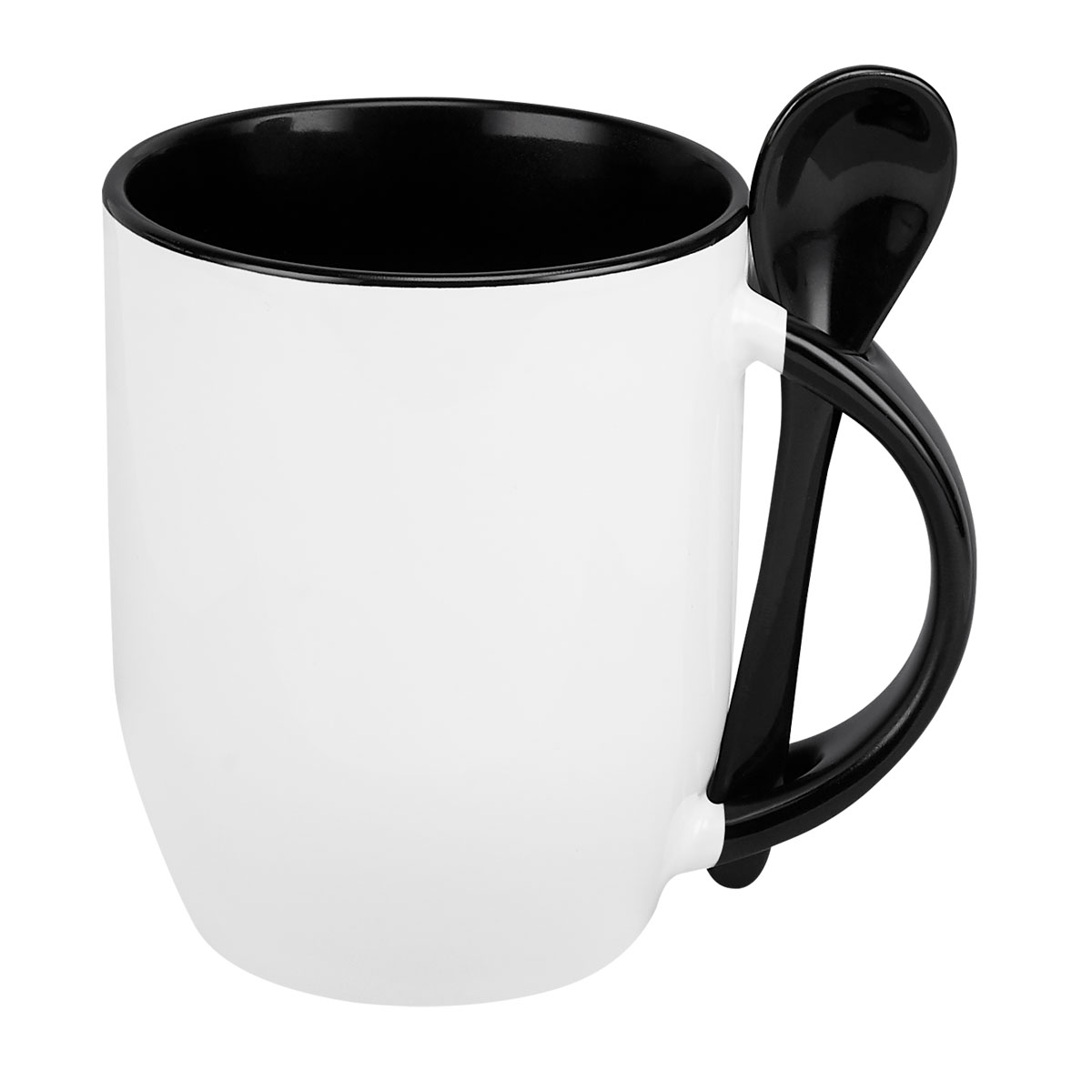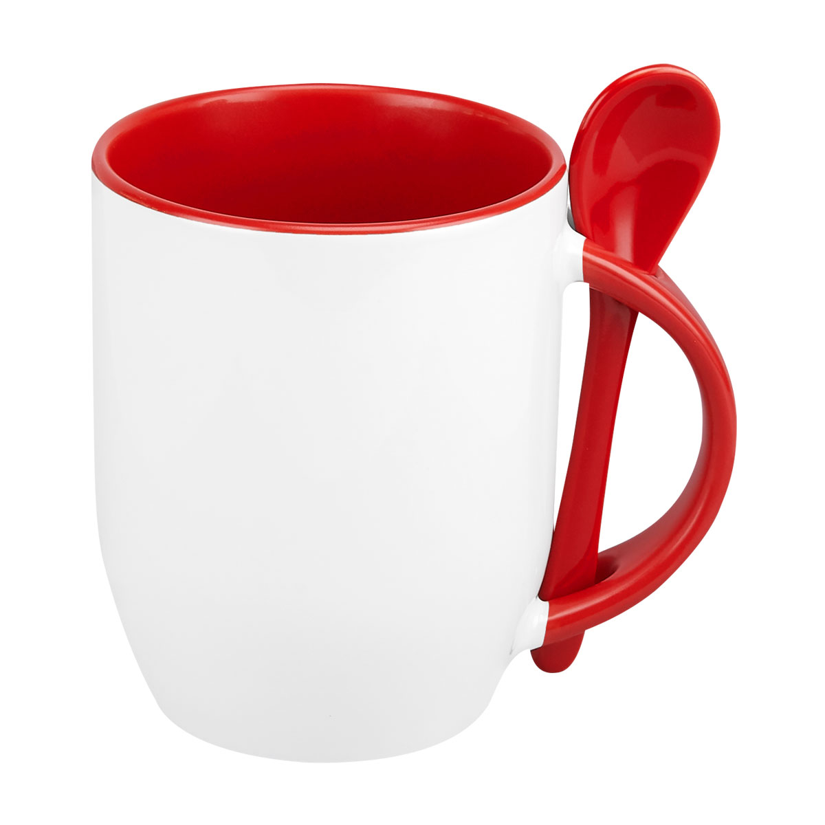 TAZA PARA SUBLIMAR MARGAO - Taza para sublimar exterior blanco e interior de color. Incluye cuchara. Venta caja cerrada de 36 piezas.
