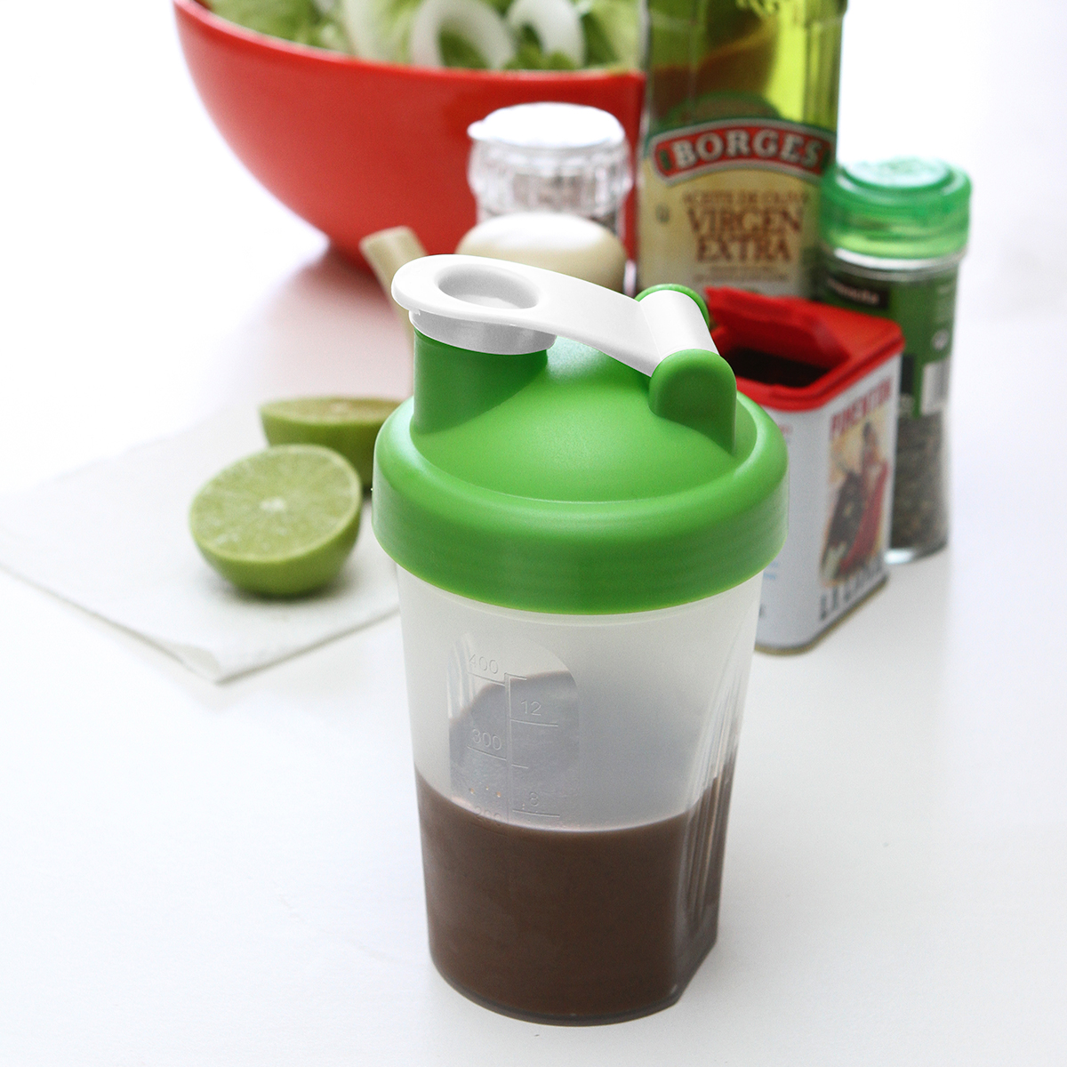 Botella mezcladora Broome. - Botella mezcladora de plástico polipropileno con agitador metálico y tapa de rosca en color con orificio para salida de liquido que cuenta con tapa de seguridad. Capacidad de 500 ml (16.5 oz).