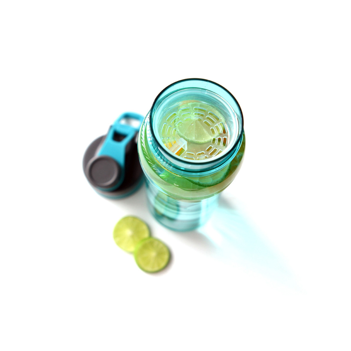 Cilindro Castelo. - Cilindro deportivo translucido fabricado en policarbonato de alta densidad, con tapón de seguridad, colador y sujetador de plástico. Capacidad 780 ml (26 oz).
