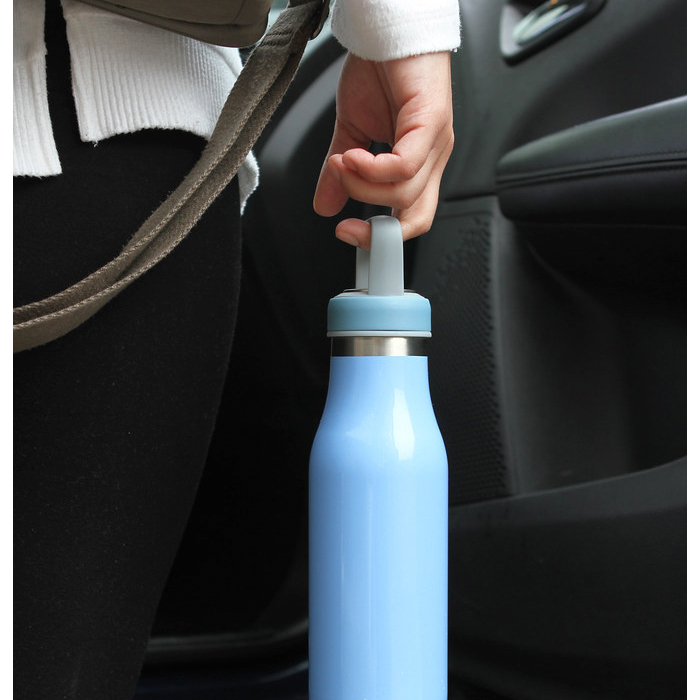 Termo Labastida. - Termo de acero inoxidable doble pared con asa de plástico y detalles metálicos, fabricado en materiales de grado alimenticio, mantiene bebidas frías o calientes por un largo tiempo, no usar en microondas. Capacidad de 510 ml (17 oz). Incluye caja de cartón individual.