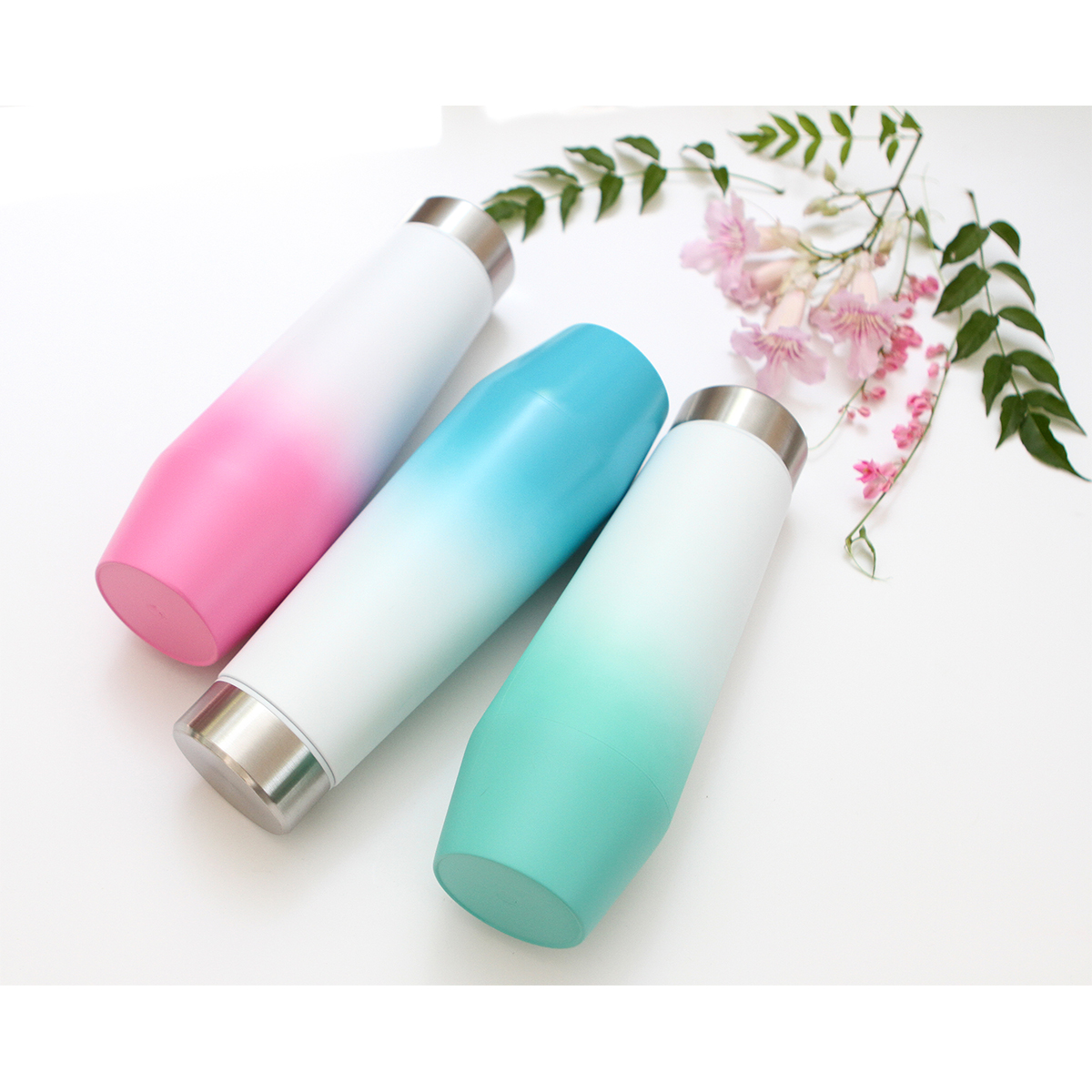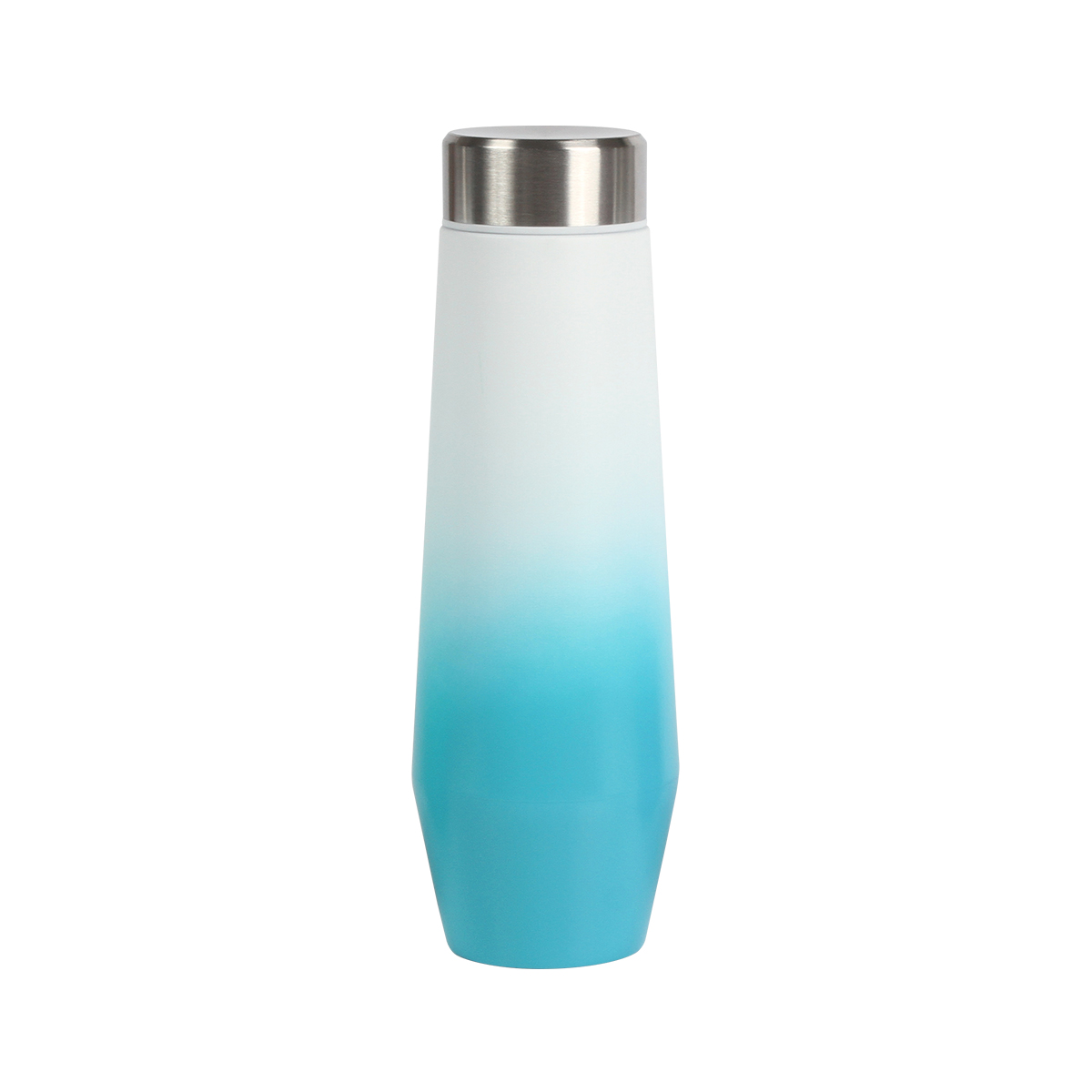 Termo Bi-tono. - Termo degradado con doble pared de acero inoxidable, tapa metálica de rosca. Fabricado en materiales de grado alimenticio, mantiene bebidas calientes por un largo tiempo, no usar en microondas. Capacidad de 530 ml. Incluye caja de cartón individual.