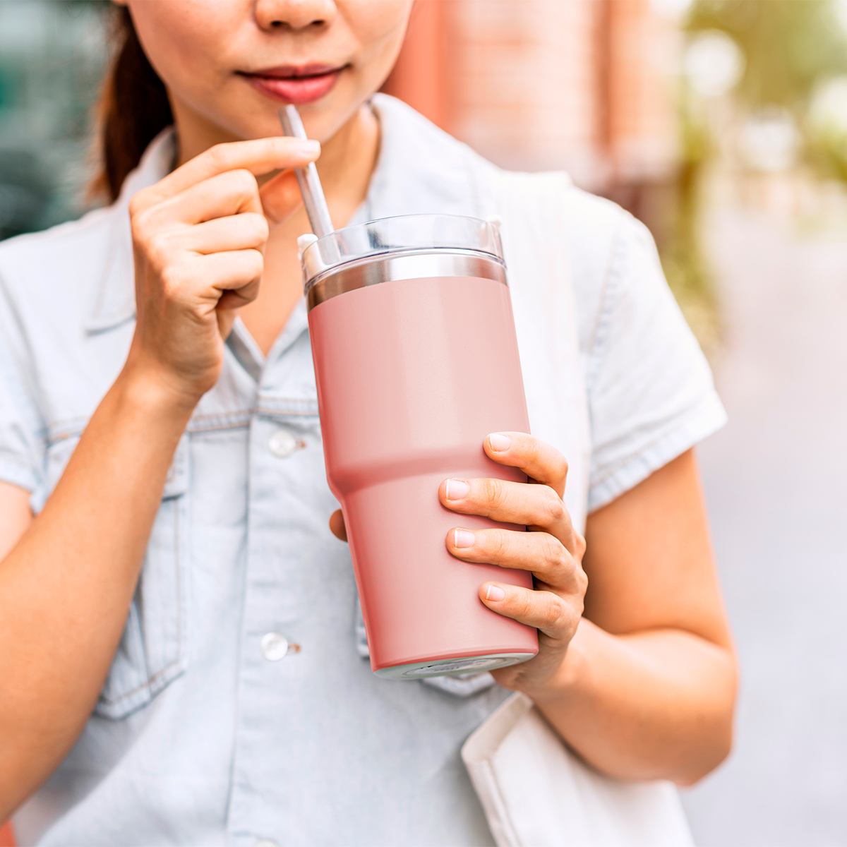 Vaso Kandava. - Vaso de acero inoxidable doble pared con tapa y popote de plástico, fabricado en materiales de grado alimenticio, mantiene bebidas frías o calientes por un largo tiempo. No usar en microondas, capacidad de 600 ml. Incluye caja de cartón individual.