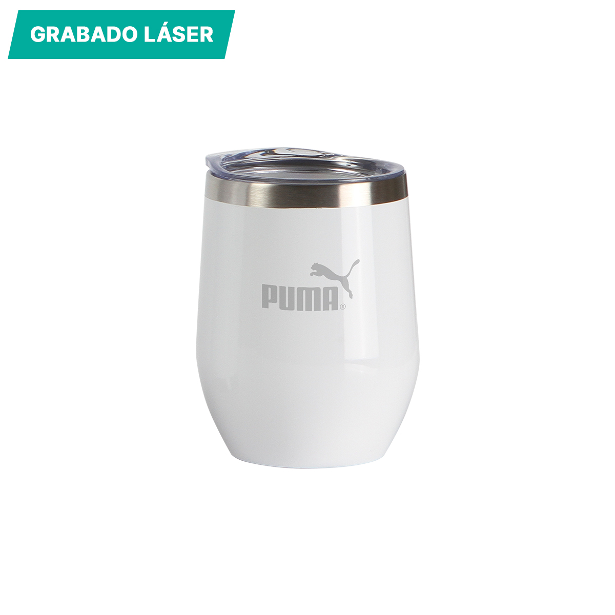 Vaso Bucchi. - Vaso térmico doble pared de acero inoxidable con tapa de plástico, con acabado para sublimación. Fabricado en materiales de grado alimenticio, mantiene bebidas frías o calientes por un largo tiempo. No usar en microondas. Capacidad 350 ml. Incluye caja de cartón individual.