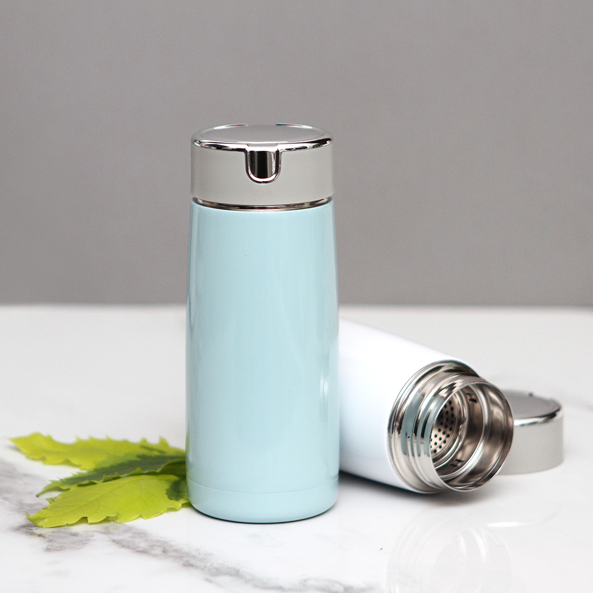 Termo Jableh. - Termo de acero inoxidable con acabado brillante, doble pared con tapa de plástico de rosca, fabricado en materiales de grado alimenticio, mantiene bebidas frías o calientes por un largo tiempo. No usar en microondas. Capacidad de 310 ml. Incluye caja de cartón individual.