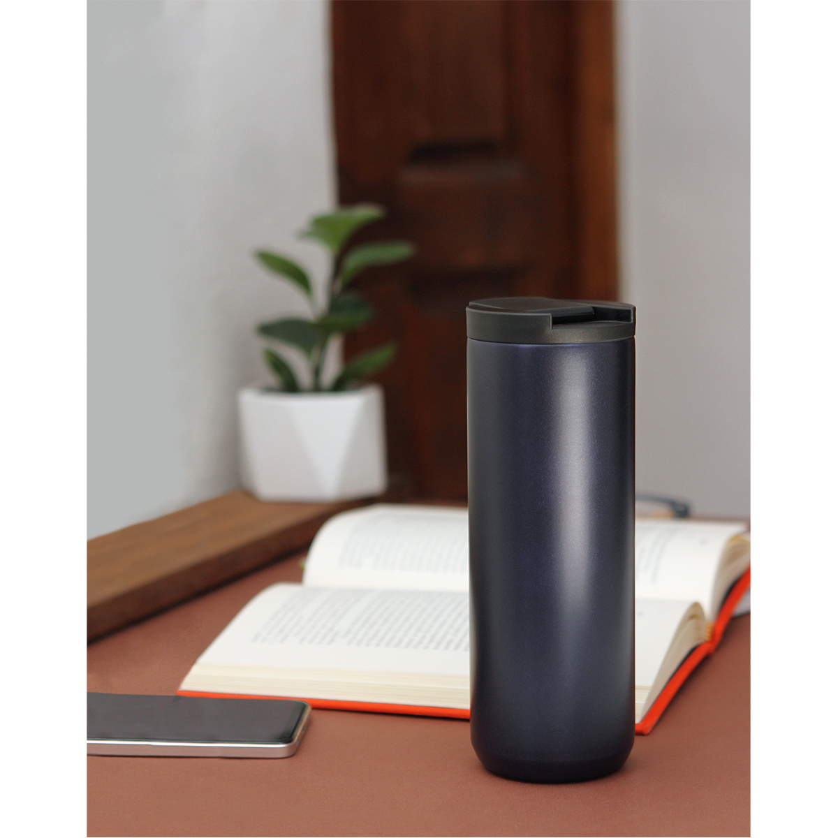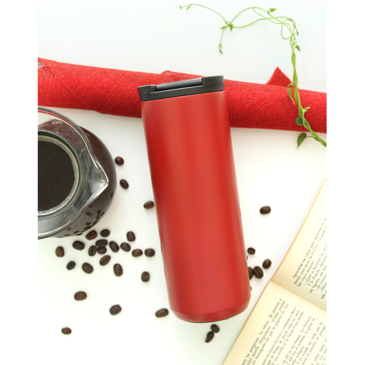 Termo Mayadin. - Termo doble pared de acero inoxidable con tapa plástica, mantiene bebidas frías o calientes por un largo tiempo. Con acabado mate. No usar en microondas. Capacidad de 500 ml. Incluye caja de cartón individual.