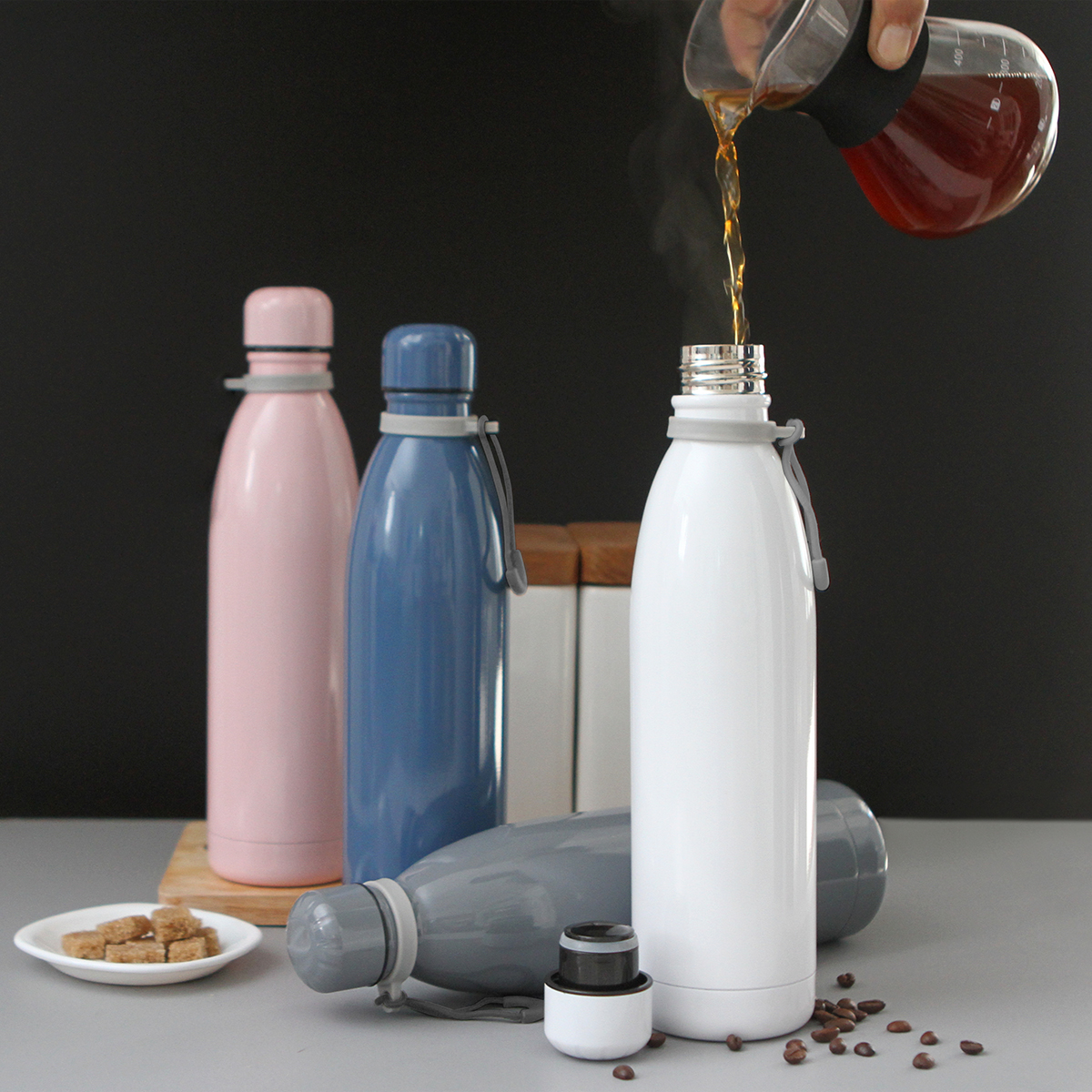 SUGAR Termo de acero inoxidable de doble pared insulado al vacío con acabado ru...