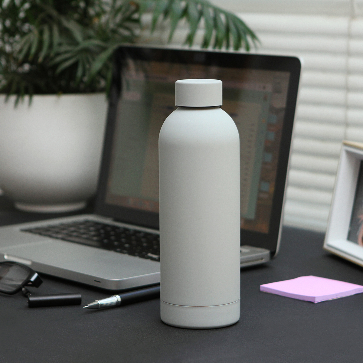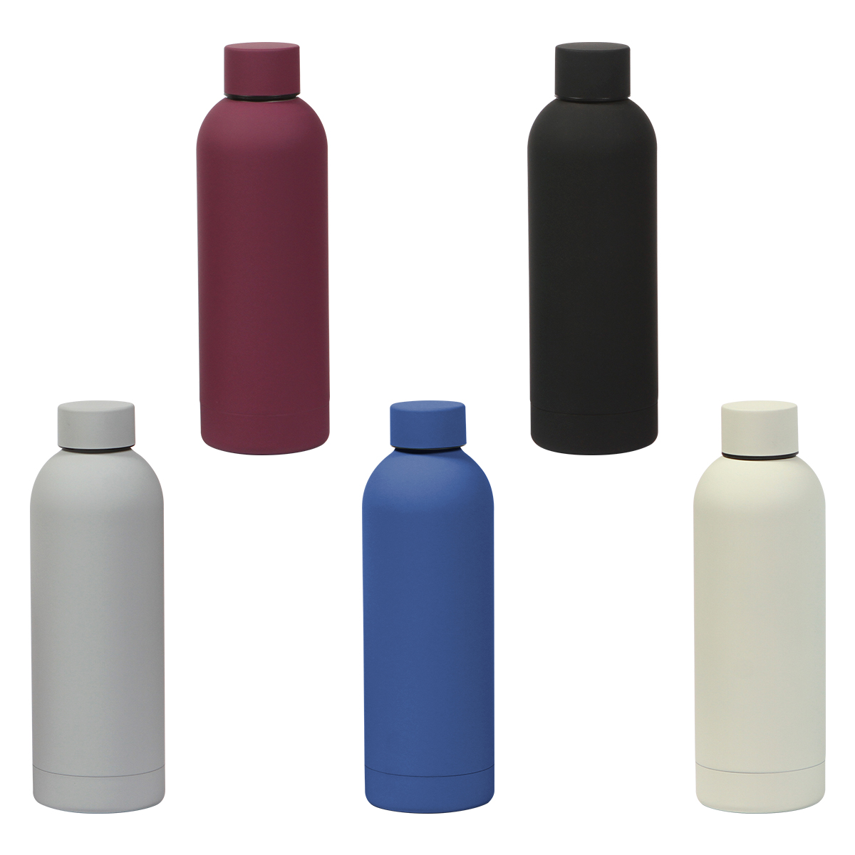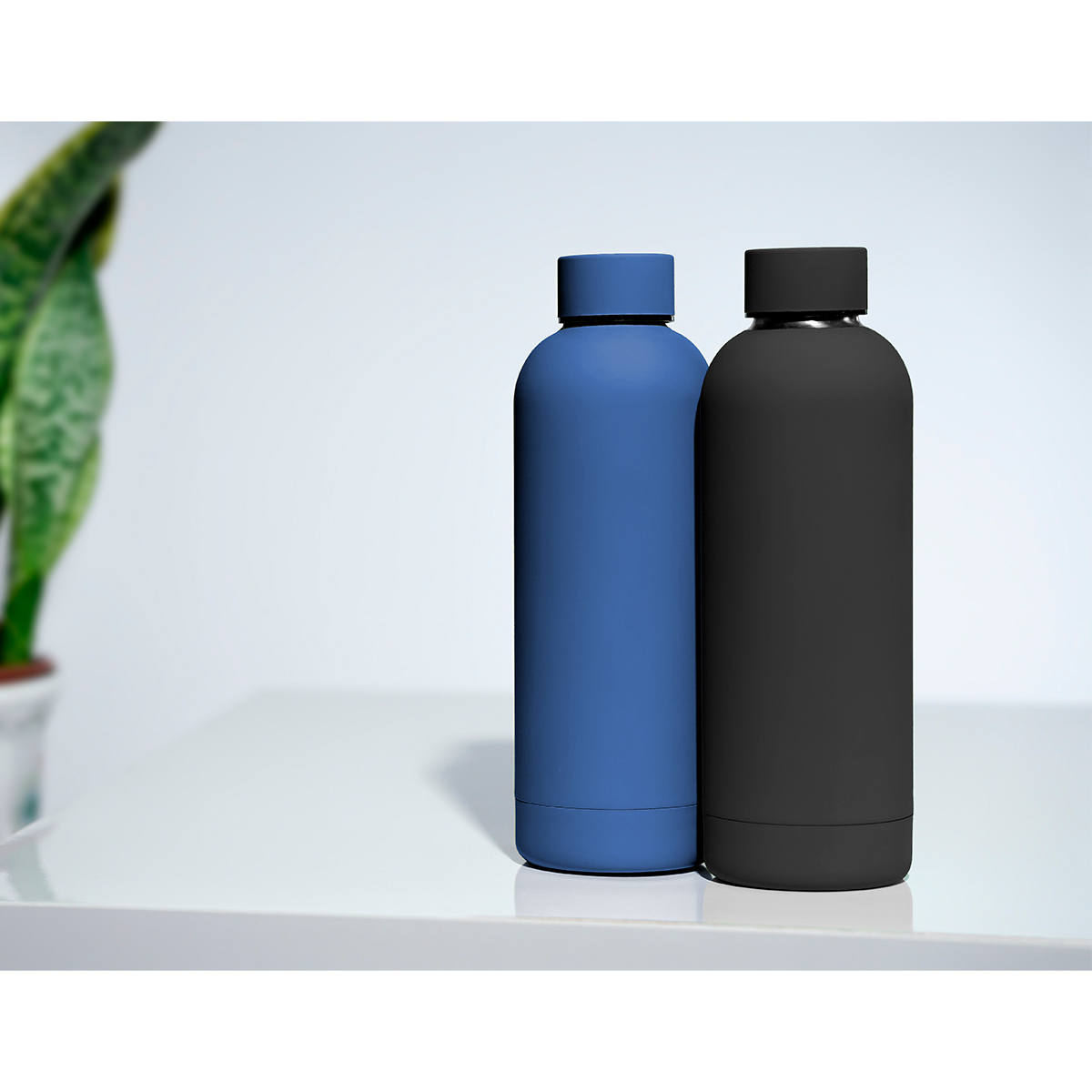 Botella Leonforte. - Botella de acero inoxidable doble pared con tapa de rosca y acabado tipo rubber. Su acabado proporciona un agarre cómodo y seguro. Capacidad de 500 ml, no usar en microondas, incluye caja individual.