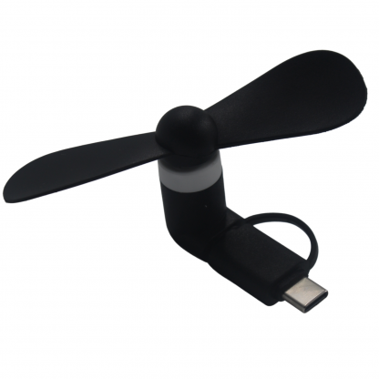 MINI VENTILADOR PORTATIL 2 EN 1 El mini ventilador tiene dos cuchillas giratorias de plástico suave que no dañarán si se toca accidentalmente. Bajo consumo de energía no agotará la batería de tu teléfono. Motor silencioso y eficiente voltaje 5 V y potencia 1 W. Las aspas del ventilador son de 1.5 pulgadas cada una, y pesa aproximadamente 1 onza. Simplemente conecta y las aspas del ventilador comenzarán a girar instantáneamente para una brisa fresca en cualquier lugar que desees. Compatible con: Android con entrada Micro USB V8. Android con entrada Tipo – C.