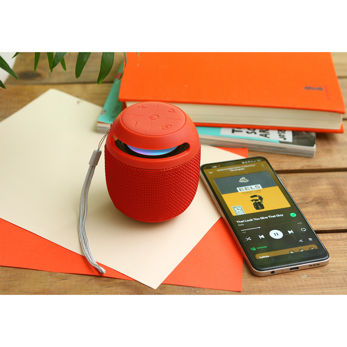 Bocina Rapla. - Bocina con conexión de sonido sin cables, portátil con potencia de 5 W, sonido 360 grados, protección IP67, resistente al agua y cuenta con efecto de luz RGB.