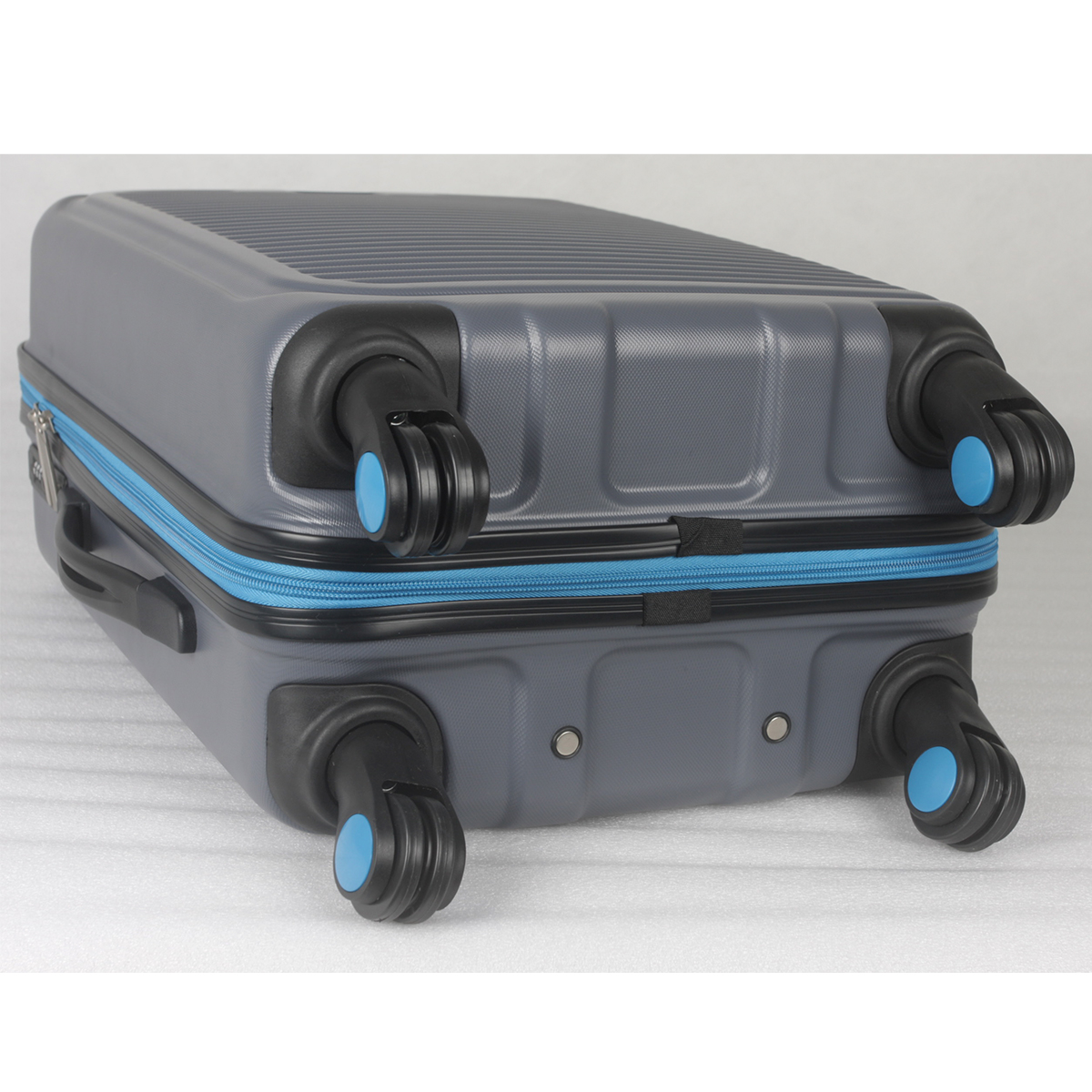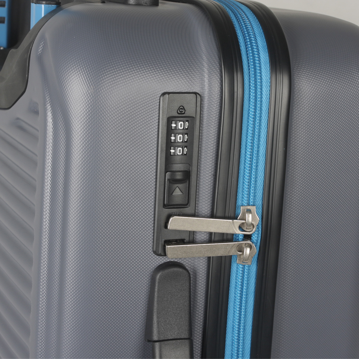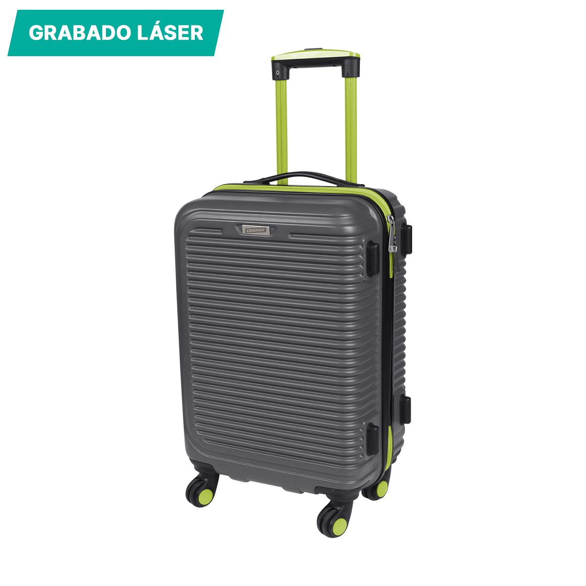 Maleta rígida Durham. - Maleta rígida de viaje tipo carry on color gris, con ruedas y cierre en diferentes colores fabricada en ABS con interiores en poliéster, con mango retráctil, chapa de seguridad, placa metálica, doble compartimento interior con cierre y tensor para ropa. Capacidad de carga de 10 kg.