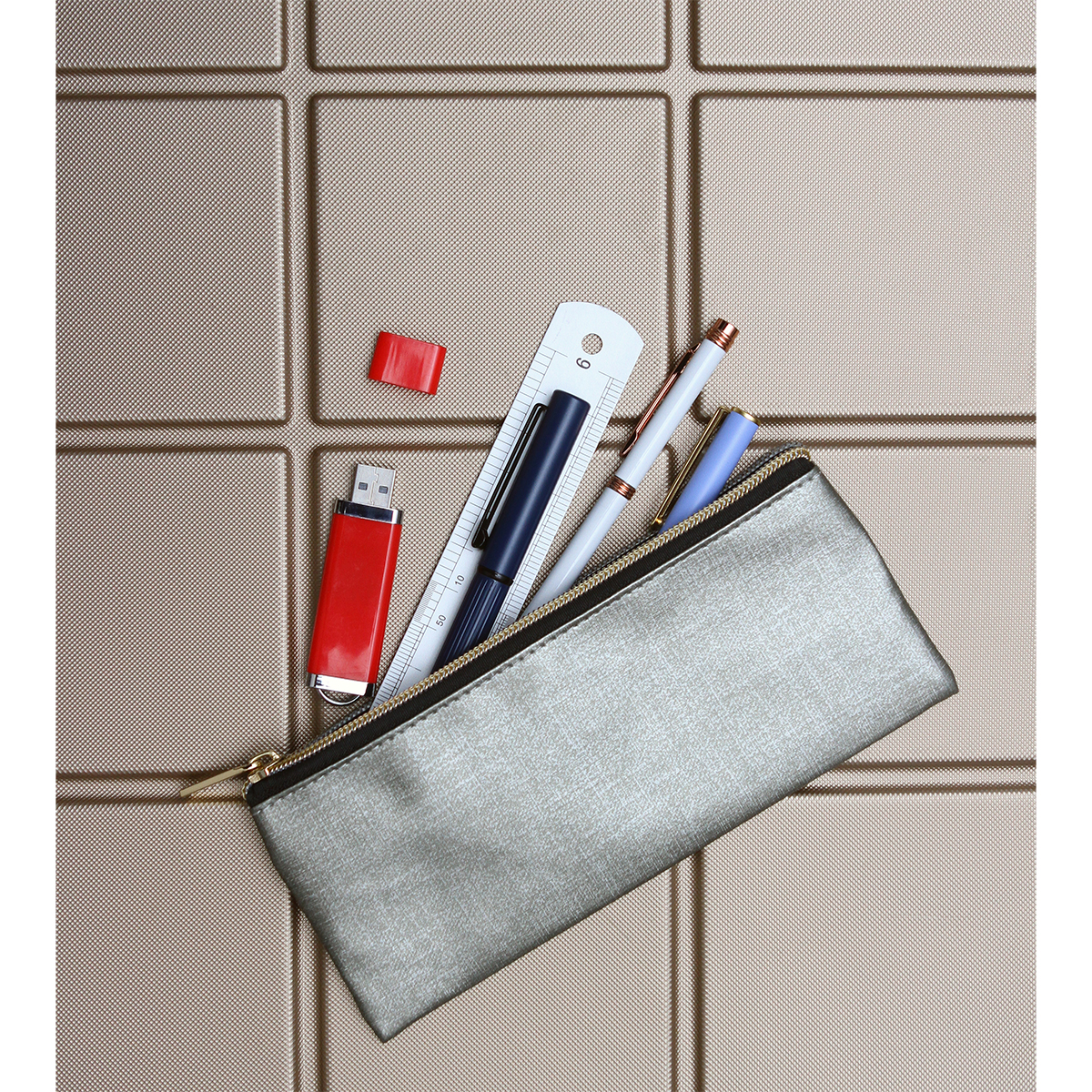 Estuchera Uíge. - Estuchera fabricada en poliéster reciclado y curpiel. Con cierre color dorado.