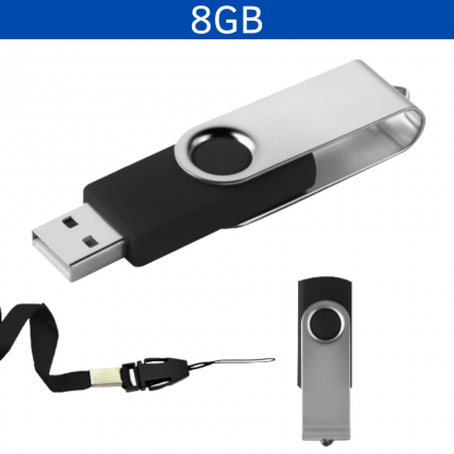 MEMORIA USB SLIM TWIST Capacidad 8 GB. Incluye colguije....