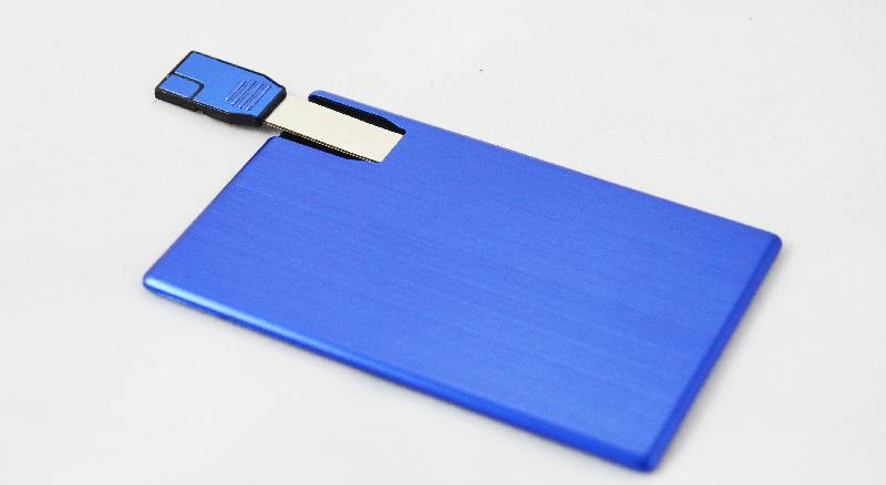 TARJETA DE ALUMINIO DE 8GB EN ROJO, PLATA, AZUL O NEGRO MEDIDAS APROXIMADAS DE 8.6 x 5.4 x 0.3 CM