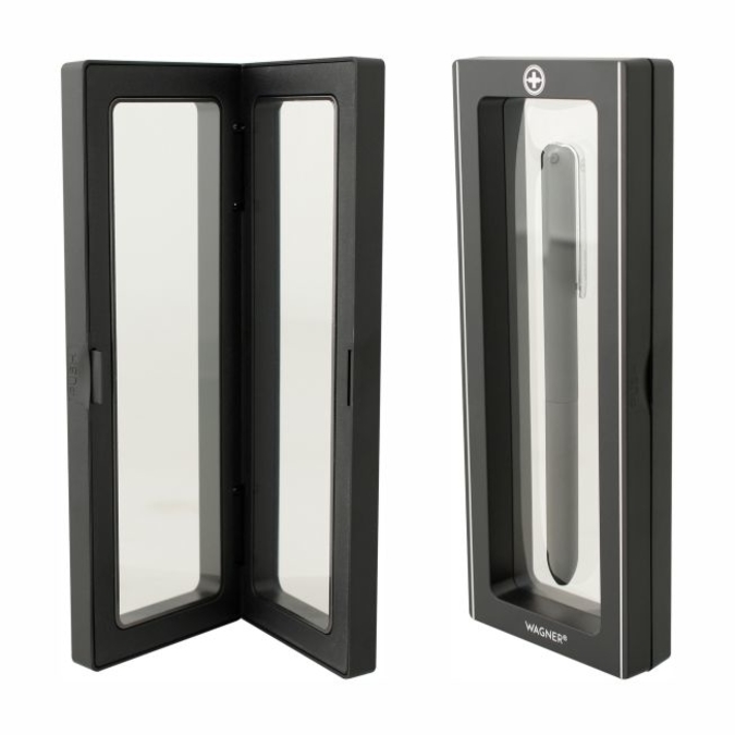 Boligrafo Wagner Q Bolígrafo marca Wagner con repuesto tipo Parker Japonés. Tinta Negra base aceite. Acabado negro satinado con clip cromado. Mecanismo de Giro. Incluye empaque individual.