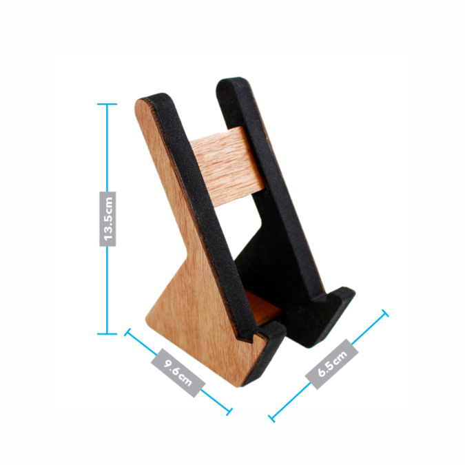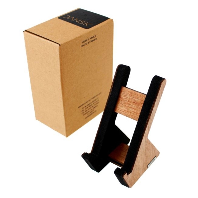 Porta Celular "Y" Soporte de escritorio para celular. Fabricado en espuma eva con recubrimiento de mdf y chapa de caoba. Un producto práctico y funcional que agregará un toque decorativo a tu espacio. Para uso vertical u horizontal. Hecho en México.