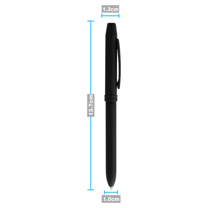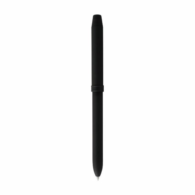 Insignia Black Bolígrafo metálico multifuncional de acero inoxidable con acabado negro antireflejante. Mecanismo de giro sin fin. Tinta negra, Tinta roja y Lapicero. Pequeño borrador en la parte superior cubierto con tapón de rosca. Elegante, discreto y ligero. Tintas de excelente desempeño.