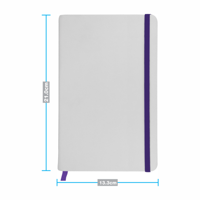 Libreta Border Libreta 80 Hojas Raya, papel óptico Silky proveniente de bosques sustentables. Suave Cubierta satinada color blanco. Toque de color unificado en: canto, cierre elástico y separador de listón. Con sobre de papel en contraportada. Pegada y cosida. Se entrega plastificada para garantizar la protección, y mejorar la presentación de cada una de las piezas.