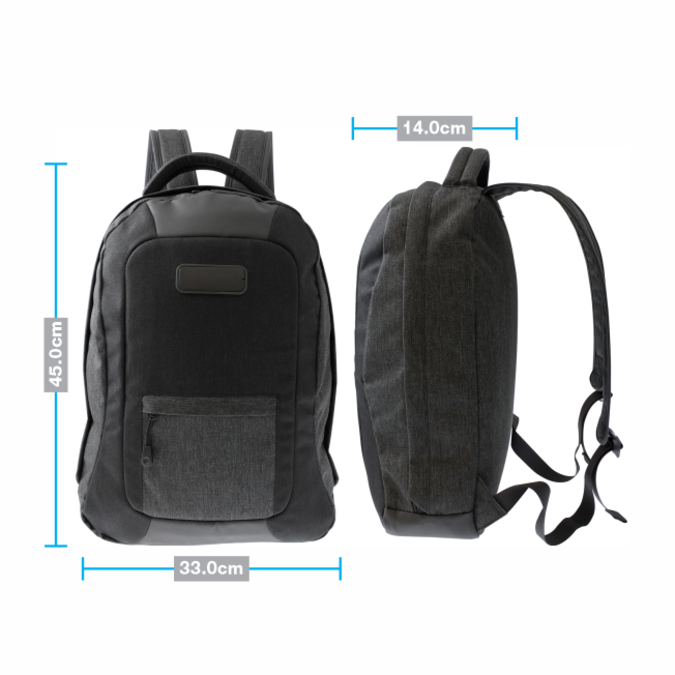 MATERIAL: TELA REPELENTE MEDIDAS: Alto: 45 cm. Ancho: 33 cm. Fondo: 14 cm. Peso: 0.6 kg IMPRESION: Laser/Serigrafia MED. EMPAQUE: Largo de la caja: 33 cm. Ancho de la caja: 46 cm. Alto de la caja: 55 cm. PESO EMPAQUE: 10 kg. PIEZAS EMPAQUE: 18