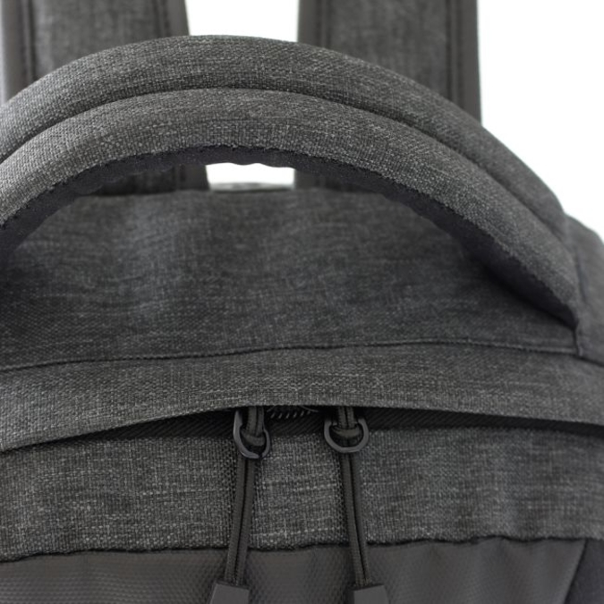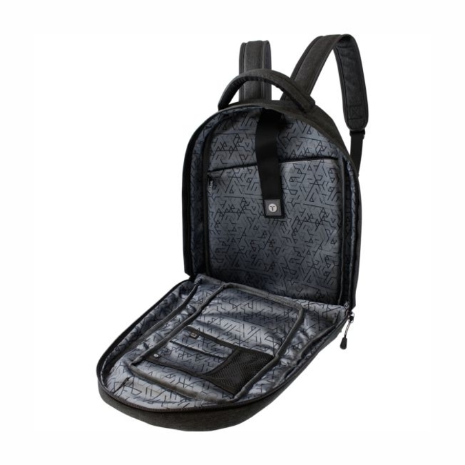 Mochila Takayama Atomik Mochila marca TAKAYAMA, fabricada mayormente en tela, con algunos detalles en curpiel texturizado. Combinación de tonalidades obscuras (negro / gris) y materiales repelentes al agua que la convierten en una opción duradera, funcional y muy práctica debido a su tamaño y ligereza. Compartimento acolchado para Lap Top de 15.6“. Apertura 180° con doble tira cierre. Solapas para ocultar cierres exteriores. Pequeña bolsa frontal de fácil acceso. Cuenta con un par de compartimentos al interior para organizar tarjetas, cables o artículos pequeños. Peso: 0.6 Kg. Capacidad: 16.3 Litros.