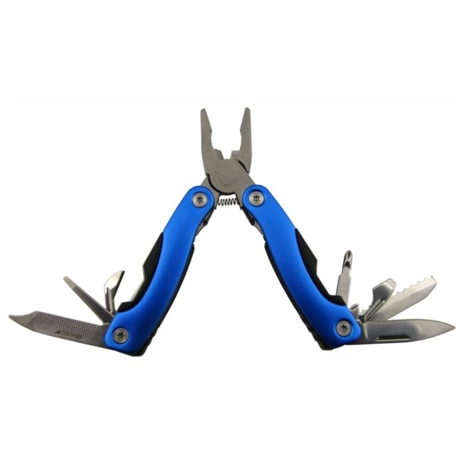 Pinzas Mini Dansk Igual que la Dänks, pero de menor tamaño, son ideales como herramienta de bolsillo. 9 en 1: Pinza de uso general, en cuyos mangos encontramos un par de navajas de diferente tamaño y forma, desarmadores (cruz y plano), abre latas y lima de uñas. Fabricada de acero inoxidable con terminados de aluminio en los mangos. Es plegable para su fácil transportación. Incluye estuche individual.