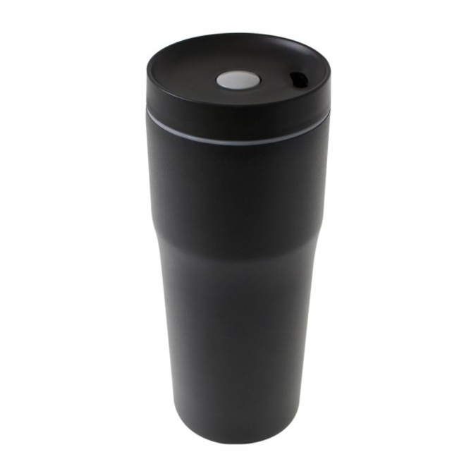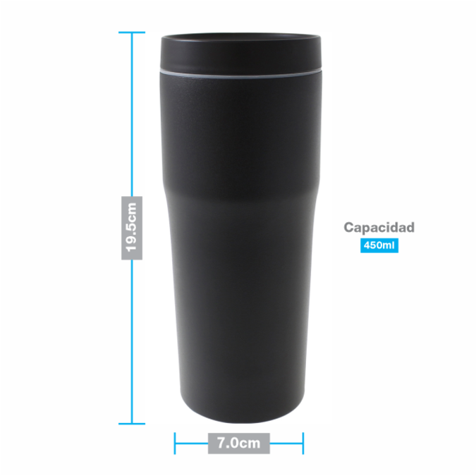 Termo Scandia Termo de acero inoxidable con doble pared en acabado “Rock” (Texturizado y súper resistente). Tapa con cierre de rosca habilitada con un botón, que permite bloquear o liberar el líquido contenido. Producto libre de BPA. Se entrega en caja de cartón individual. Capacidad: 450 ml. Lavar antes de usar.