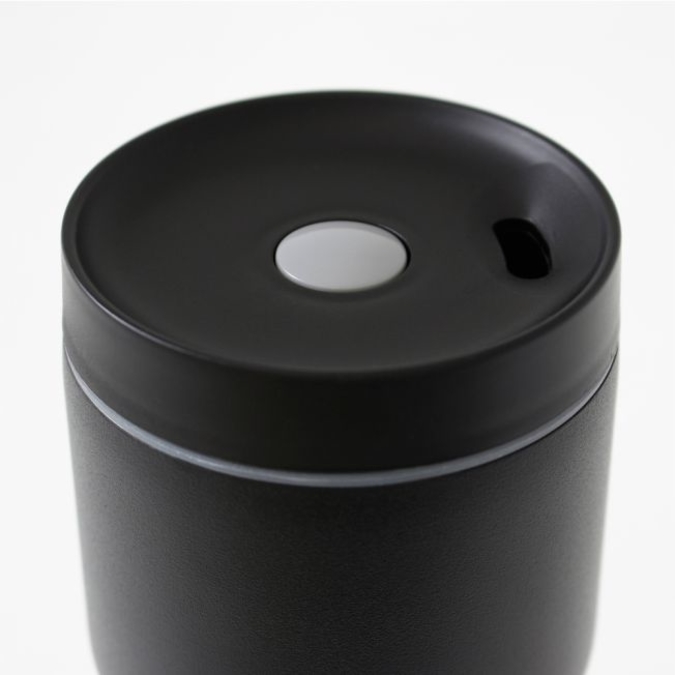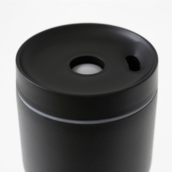 TERMO LATA FORO ROJO. Vaso térmico con acabado mate, tiene tapa transparente de...