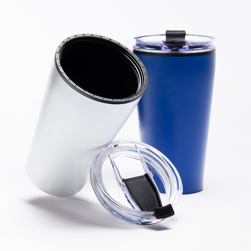 Vaso Lusail. - Vaso de acero inoxidable doble pared, tapa de plástico con boqui...
